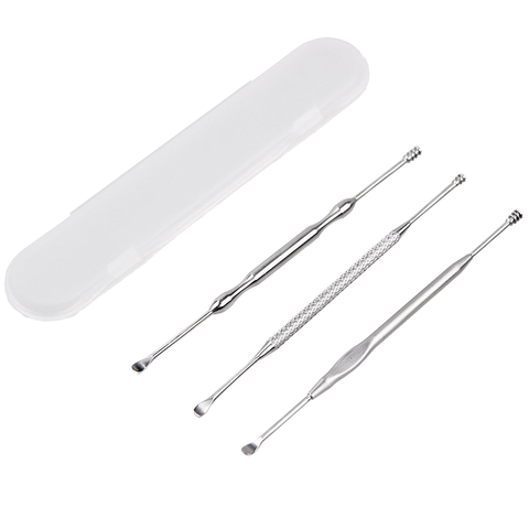 Kit de eliminación de cerumen de acero inoxidable de alta calidad, 3 uds., herramienta de limpieza de oídos con caja de transporte de plástico