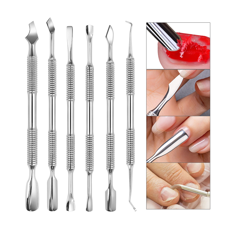أداة فنية احترافية عالية الجودة برأس مزدوج للأظافر من الفولاذ أداة فنية حادة لإزالة الجلد الميت
